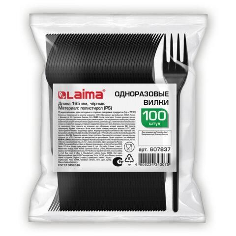Одноразовые вилки 165 мм, КОМПЛЕКТ 100 шт., СТАНДАРТ, пластиковые, черные, LAIMA, 607837