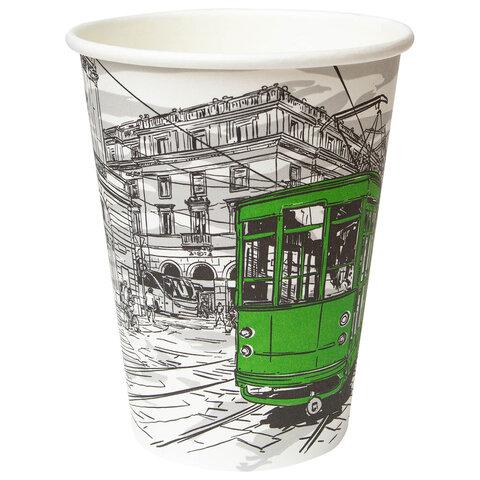 Стакан одноразовый бумажный 300/360 мл, D 90 мм, с печатью "ГОРОД", КОМПЛЕКТ 50 шт., холодное/горячее, WELDAY (ВЭЛДЭЙ), 702696