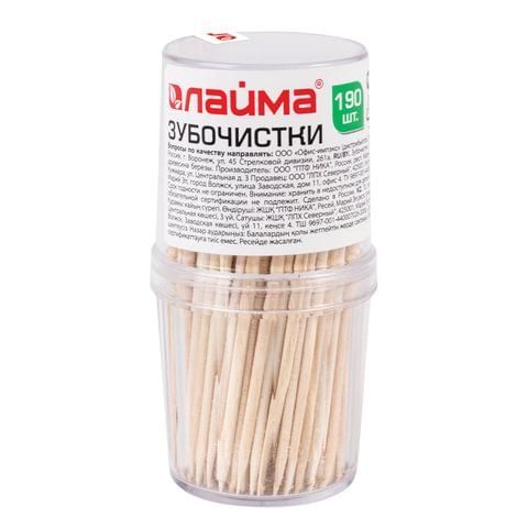 Зубочистки деревянные ЛАЙМА, КОМПЛЕКТ 190 штук, в диспенсере, 604770