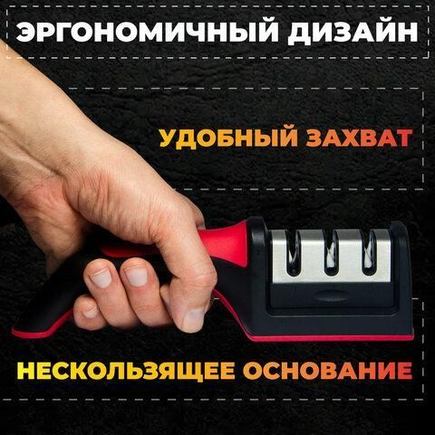 Главным преимуществом точилки для ножей является наличие 3 слотов для трёх этапов заточки: