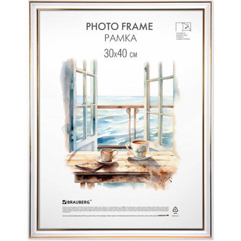 Рамка 30*40 см небьющаяся, багет 20 мм пластик, BRAUBERG HIT3, белая с двойной позолотой, 391383