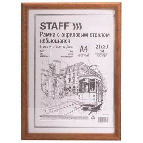 Рамка НЕБЬЮЩАЯСЯ 21х30 см, МДФ под дерево, багет 17 мм, мокко, акриловый экран, STAFF "Carven", 391212