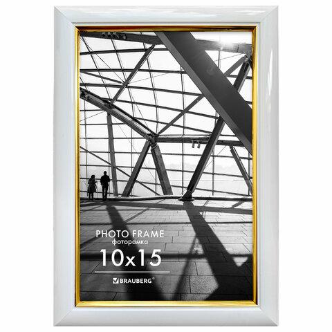 Рамка 10х15 см небьющаяся, багет 14,6 мм, пластик, BRAUBERG "Original Line", белая/золото, 391235
