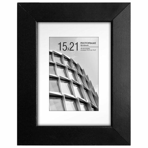 Рамка 15х21 см с паспарту 10х15 см небьющаяся, багет 40 мм, МДФ, BRAUBERG "Malcolm", черная, 391268
