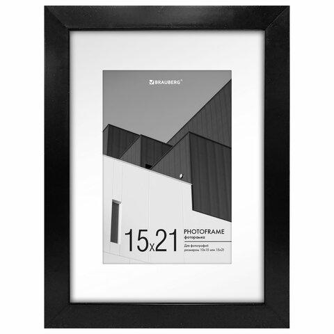 Рамка 15х21 см с паспарту 10х15 см небьющаяся, багет 20 мм, пластик, BRAUBERG "New Age", черная, 391273