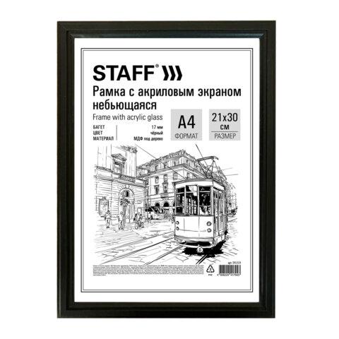 Рамка 21*30 см небьющаяся, багет 17 мм МДФ под дерево, STAFF "Carven", черная, 391319