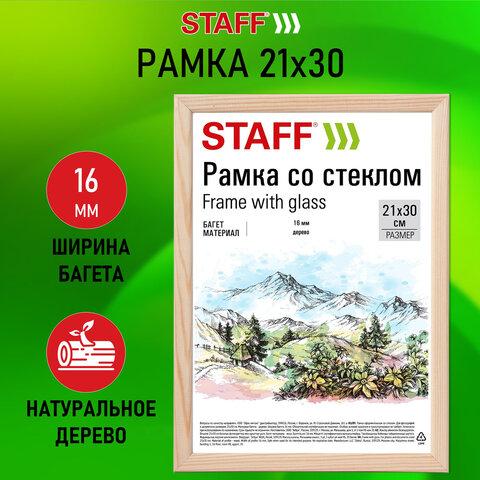 Рамка 21*30 см со стеклом, багет 16 мм, дерево, STAFF "Sonata", цвет натуральный, 391358
