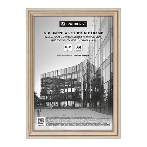 Рамка 21х30 см, дерево, багет 20 мм, BRAUBERG "Business", цвет натуральный, акриловый экран, 391292