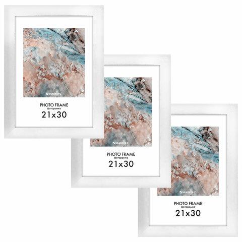 Рамка 21х30 см небьющаяся, КОМПЛЕКТ 3 шт., багет 29 мм, МДФ, BRAUBERG "Basic", белая, 391260
