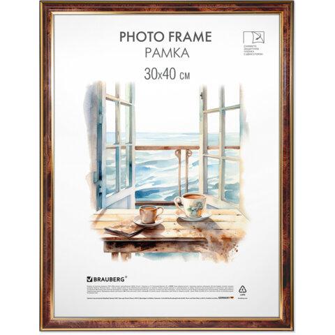 Рамка 30*40 см небьющаяся, багет 20 мм пластик, BRAUBERG HIT3, цвет темный орех с позолотой, 391384