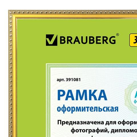 Рамка 30х40 см, пластик, багет 16 мм, BRAUBERG "HIT5", золото, стекло, 391081