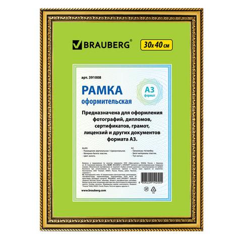 Рамка 30х40 см, пластик, багет 30 мм, BRAUBERG "HIT4", золото, стекло, 391008