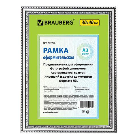 Рамка 30х40 см, пластик, багет 30 мм, BRAUBERG "HIT4", серебро, стекло, 391009