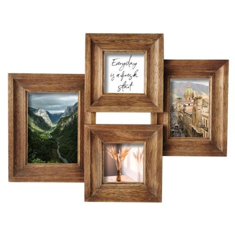 Рамка из мангового дерева BRAUBERG LOFT QUAD, 4 фото 2х10*10см/10*15см/13*18см, акриловый экран, 32*59 см, 391283