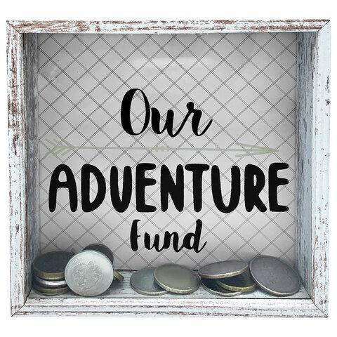 Вставка из прочного стекла с крупной надписью "Our adventure fund" привлечет к себе внимание.