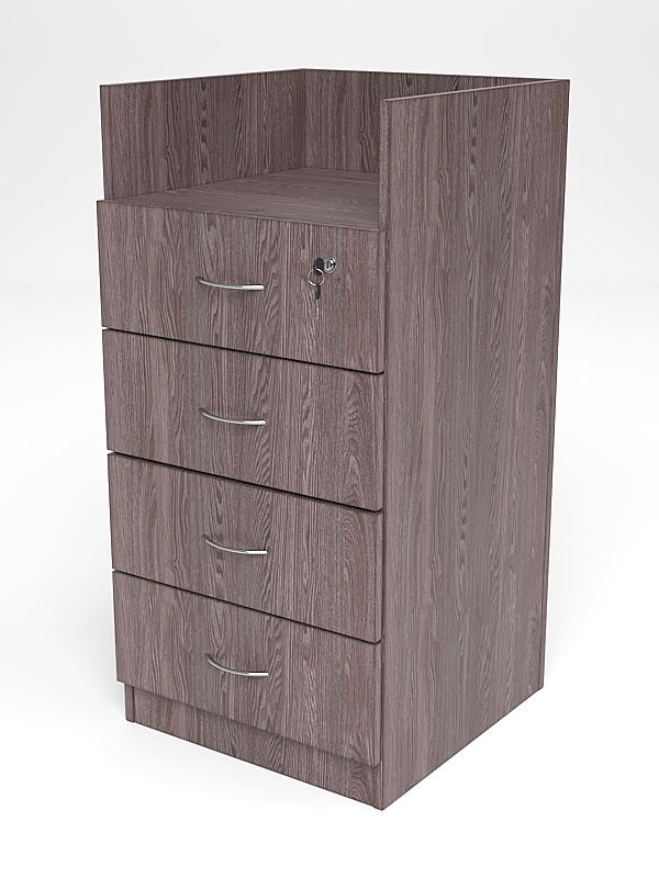 Прилавок предназначен для произведения расчетов с покупателями. В прилавке размещена ниша для расположения кассового аппарата, также прилавок оснащён тремя выдвижными ящиками.