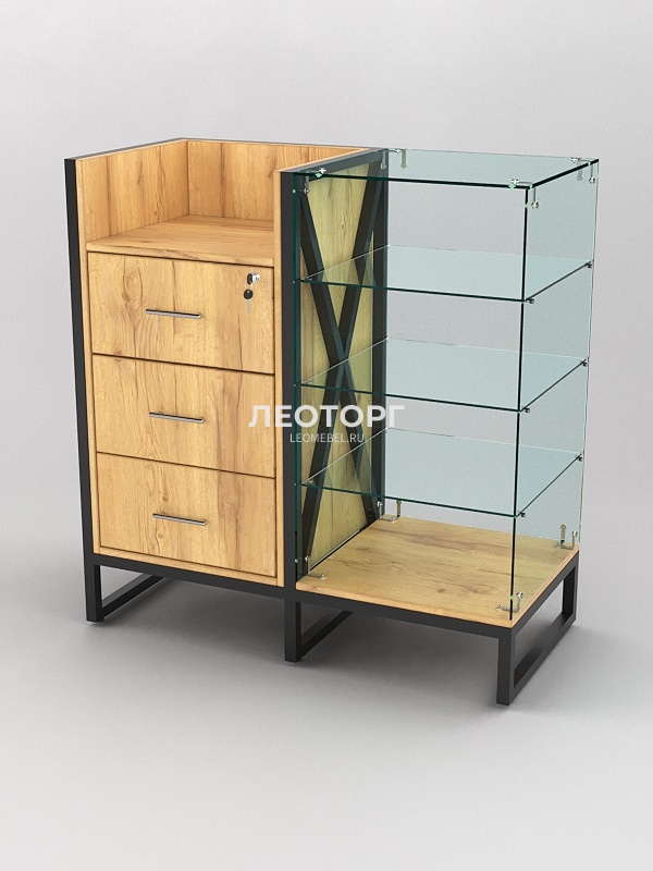 В составе два прилавка: Прилавок под кассу "ЛОФТ СТИЛЬ" №6 - 1шт и Прилавок "ЛОФТ СТИЛЬ" №12-22 - 1шт