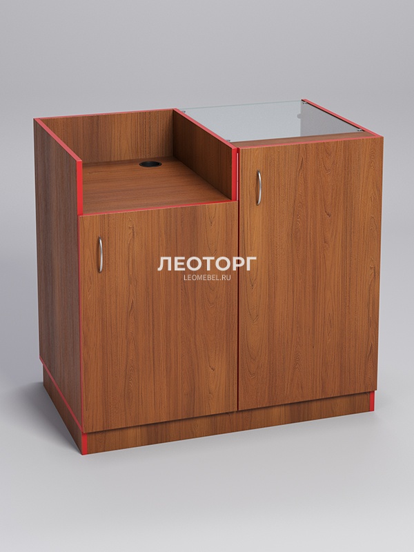 Прилавок под кассу "ТОРГОВЫЙ" №7 с дверкой, Орех, кромка красная
