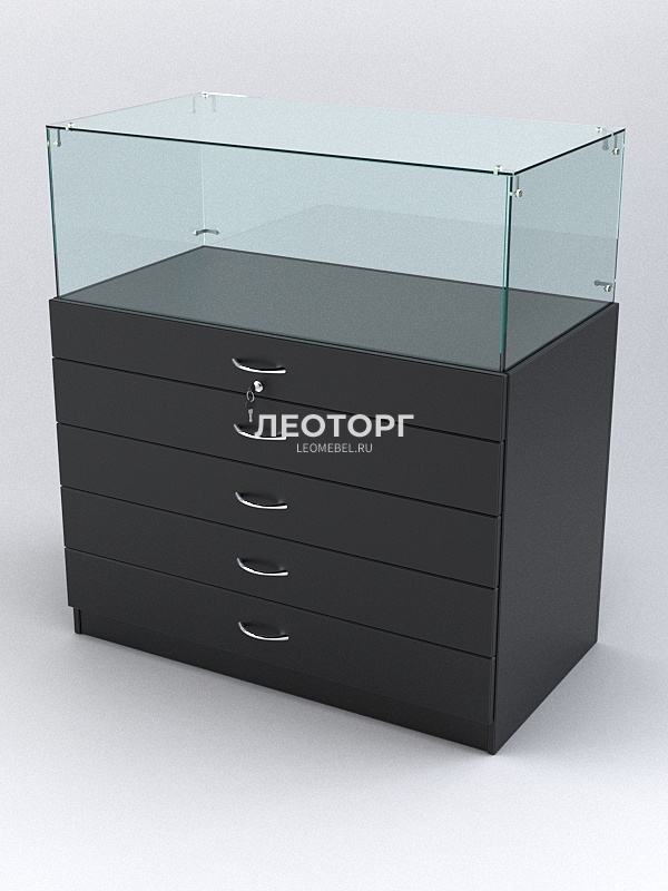 Накопитель оборудован четырьмя выдвижными ящиками. Пятым выдвижным ящиком является полка витрины. Ящик с полкой закрываются на ключ.