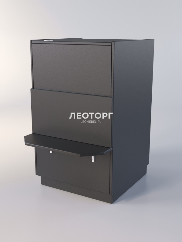 Прилавок полностью закрыт со стороны покупателя. На лицевой панели имеется полка для сумок. С внутренней стороны находится большое отделение с полкой. Каркас можно изготовить в другом цветовом сочетании, выбрав варианты, перечисленные на сайте.