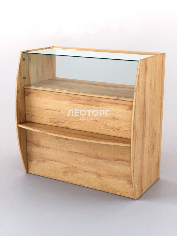 Каркас прилавка выполнен из ЛДСП. Корпус витрины - стеклянный.