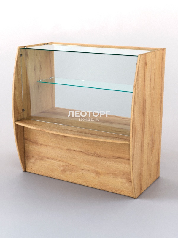 Каркас прилавка выполнен из ЛДСП. Корпус и полка витрины - стеклянные.