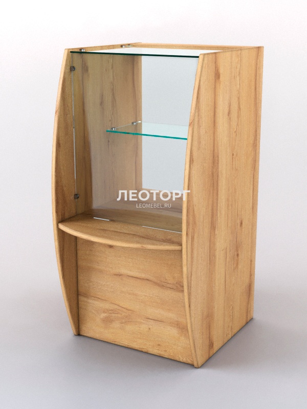 Каркас прилавка выполнен из ЛДСП. Корпус и полка витрины - стеклянные.