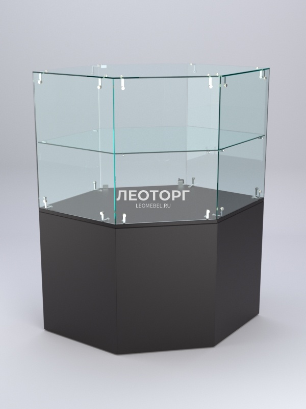 Прилавок состоит из накопителя и витрины с полкой. Модель имеет шестигранную форму. Оба элемента оборудованы дверками, закрывающимися на ключ.