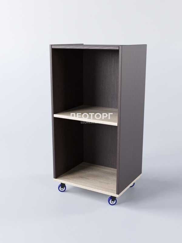 Прилавок выкатной, прямоугольный. Каркас выполнен из ЛДСП. Внутри имеется полка для размещения служебного инвентаря. Конструкция оборудована колесами. В ассортименте представлено семь вариантов расцветки.