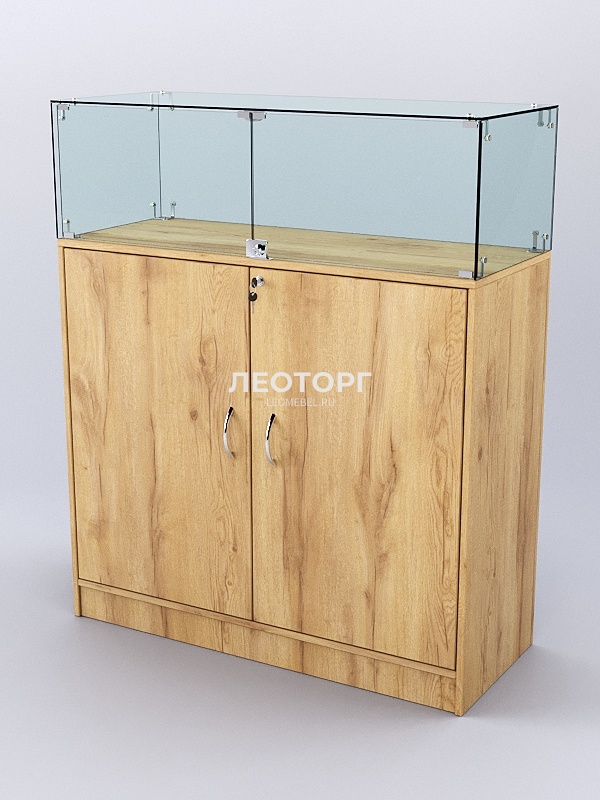 Каркас выполнен из ЛДСП двух цветов. Корпус витрины - стеклянный.