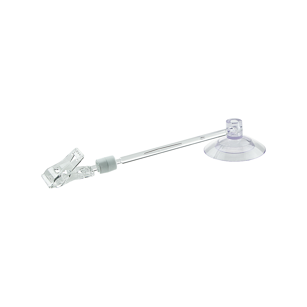 Усиленная присоска с двумя контурами крепления с зажимом для табличек толщиной 1-2 мм. Ø присоски 46 мм. Установка зажима под углом 0° или 90°. Длина ножки – 100 мм.