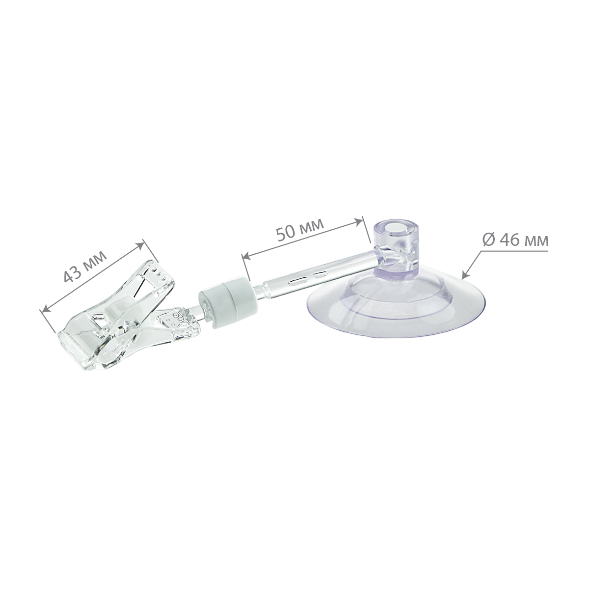 Усиленная присоска с двумя контурами крепления с зажимом для табличек толщиной 1-2 мм. Ø присоски 46 мм. Установка зажима под углом 0° или 90°. Длина ножки – 50 мм.