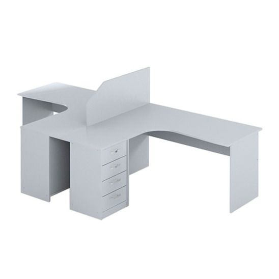 Стол угловой Веллингтон с тумбой и экраном, серый