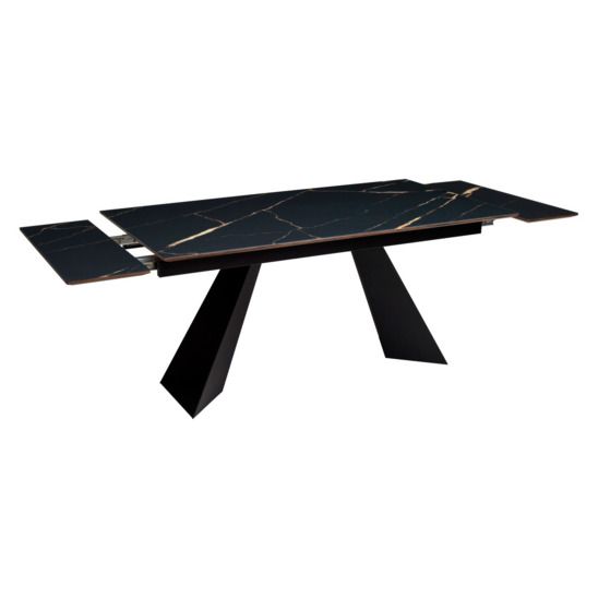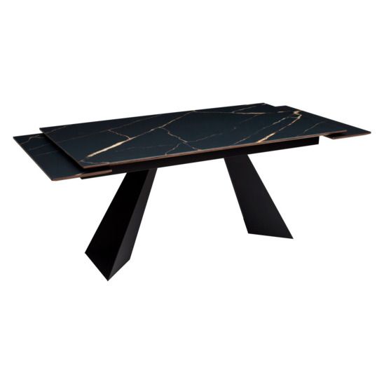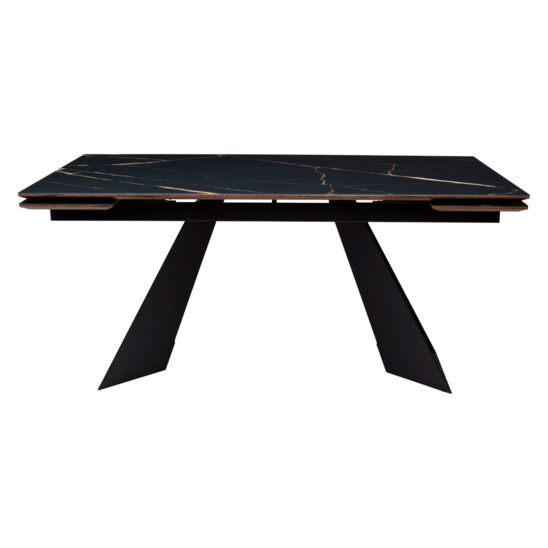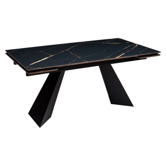 Арт. Стол Купер 160 Обсидиан, стекло/ черный каркас