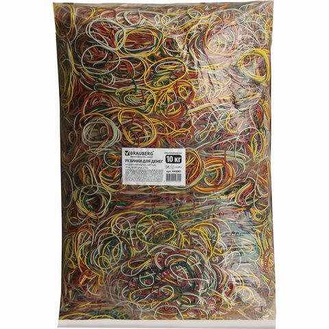 Резинки банковские универсальные диаметром 60 мм, BRAUBERG 10 кг, цветные, натуральный каучук, 440081