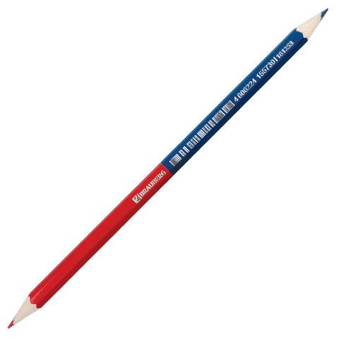 Карандаш двухцветный красно-синий, BRAUBERG, заточенный, грифель 2,9 мм, 181253