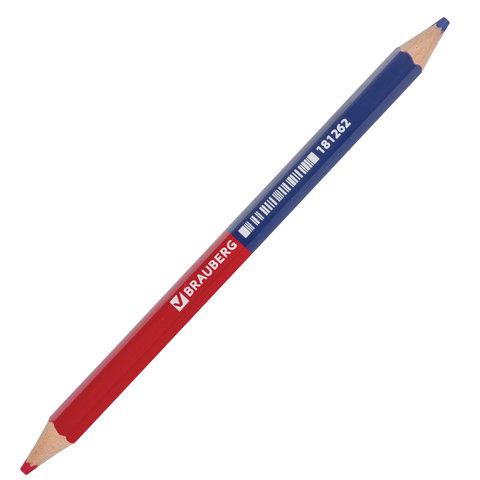 Карандаш двухцветный, красно-синий, утолщённый, BRAUBERG, заточенный, грифель 4,0 мм, 181262
