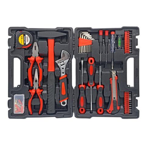 Столярно-слесарный набор ГРАНДМАСТЕР включает в себя необходимые инструменты для использования в быту. Состав набора позволит выполнить мелкий ремонт дома и на даче, а также пригодится для ремонта колесной и бытовой техники.Инструменты изготовлены из закалённой углеродистой стали. Рукоятки выполнены из нескользящего ПВХ для максимального комфорта и безопасности во время использования. В состав набора входят инструменты, необходимые в столярно-слесарном деле, для ремонта автомобиля и любой колесной техники, бытовой техники, а также мебели. Весь инструмент располагается в ударопрочном кейсе с металлическими застежками и ручкой для удобства переноски. Для каждого предмета в наборе предусмотрено специальное углубление для удобства хранения. Состав набора: 1 ШТ. - МОЛОТОК 1 ШТ. - ПЛОСКОГУБЦЫ КОМБИНИРОВАННЫЕ 1 ШТ. - ПЛОСКОГУБЦЫ-ДЛИННОГУБЦЫ 1 ШТ. - РАЗВОДНОЙ КЛЮЧ 1 ШТ. - ОТВЁРТКА МАГНИТНАЯ ДЛЯ БИТ 20 ШТ. - БИТЫ 1/4" 25ММ (SL: 3, 4, 5, 6; PH: 1, 2, 3; PZ: 1, 2, 3; H: 3, 4, 5, 6; T: 10, 15, 20, 25, 27, 30) 2 ШТ. - ОТВЁРТКИ (SL6x100, PH2x100) 2 ШТ. - ОТВЁРТКИ ДЛЯ ТОЧНЫХ РАБОТ (SL3x40, PH1x40) 1 ШТ. - ОТВЁРТКА ИНДИКАТОРНАЯ 8 ШТ. - ШЕСТИГРАННЫЕ КЛЮЧИ С ДЕРЖАТЕЛЕМ (1.5, 2, 2.5, 3, 4, 5, 5.5, 6) 1 ШТ. - МИНИ-УРОВЕНЬ 1 ШТ. - РУЛЕТКА 3М x 16ММ 1 ШТ. - НОЖ ПЛАСТИКОВЫЙ 43 ШТ. - КРЕПЕЖНЫЕ ЭЛЕМЕНТЫ (гвозди, шурупы, дюбели, крюки) Упакован в цветной рукав, термоусадочную пленку и коричневый гофрокартон.