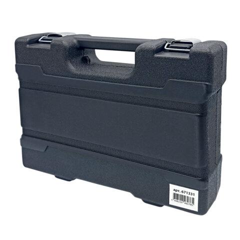 Весь инструмент располагается в ударопрочном кейсе с металлическими застежками и ручкой для удобства переноски. Для каждого предмета в наборе предусмотрено специальное углубление для удобства хранения.