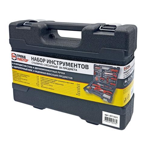 Набор инструментов столярно-слесарный, 84 предмета, пластиковый кейс, ГРАНДМАСТЕР, 671331