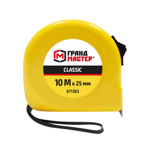 Рулетка измерительная 10 м х 25 мм, пластиковый корпус, с фиксатором, ГРАНДМАСТЕР Classic, 671363