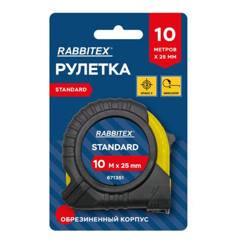 Рулетка измерительная 10м х 25мм,обрезиненный корпус, с фиксатором, RABBITEX Standard, 671351