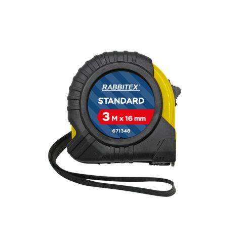 Рулетка измерительная 3м х 16мм, обрезиненный корпус, с фиксатором, RABBITEX Standard, 671348