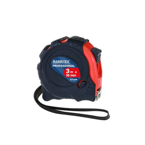 Рулетка измерительная 3м х 16мм, обрезиненный корпус, 3 фиксатора, RABBITEX Professional, 671356