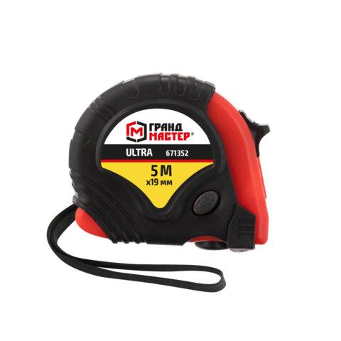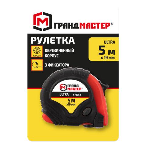 Рулетка измерительная 5 м х 19 мм, обрезиненный корпус, 3 фиксатора, ГРАНДМАСТЕР Ultra, 671352