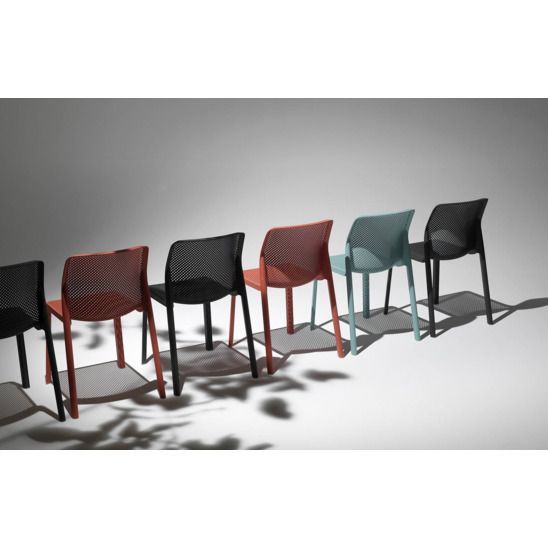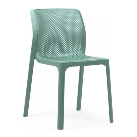 Стул Bit из пластика. Материал - полипропилен со стекловолокном, что обеспечивает вандалоустойчивость, материал прокрашен в массе, поэтому царапины на нем не будут видны, не выцветает под воздействием УФ-лучей. Матовая структура и цвет. Ножки не скользящие, устойчивые. Стулья легко штабелируются.