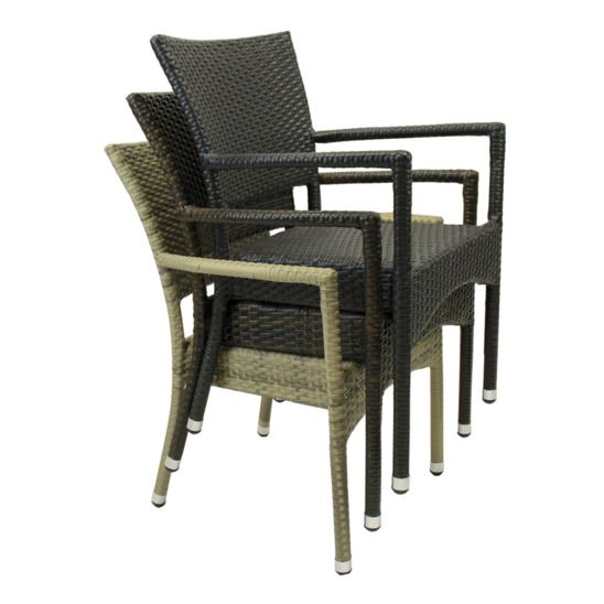 Штабелируемые кресла с прочной оплеткой из плоского искусственного ротанга.
