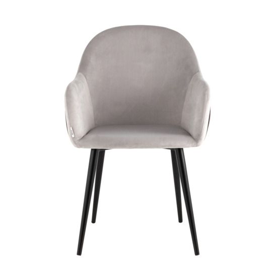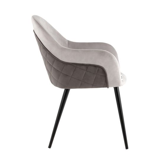Обивка выполнена из велюра, прочного и износостойкого материала. Внешняя сторона спинки украшена ромбовидной стежкой. Подлокотники, высотой 20 см, обеспечат максимальный комфорт. Прочные металлические ножки в черном цвете выдерживают нагрузку до 120 кг. На ножках дополнительно предусмотрены специальные подпятники, которые предотвращают скольжение и повреждение напольного покрытия.