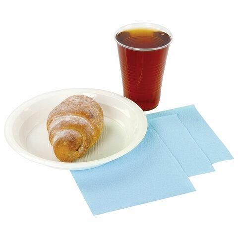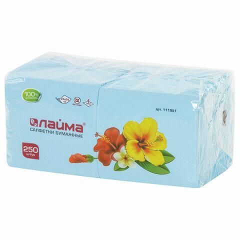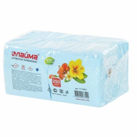 Салфетки бумажные, 250 шт., 24х24 см, LAIMA, синие (пастель), 100% целлюлоза, 111951
