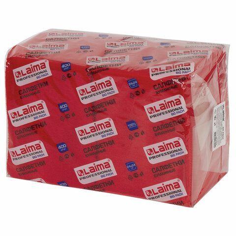 Салфетки бумажные 400 шт., 24х24 см, LAIMA, "Big Pack", красные (интенсив), 100% целлюлоза, 111795
